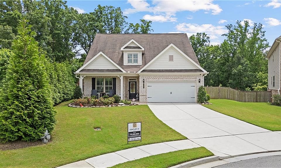 Fantastic home in Trinity Falls, better than new! This immaculate 4-bedroom, 2.5-bath residence sits on a premium quiet corner in the only cul-de-sac of the whole neighborhood - originally the builder's personal home - showcasing multiple premium upgrades & amenities. With thoughtful design features throughout, this home offers custom barn doors, shiplap accent wall, stylish lighting, and five walk-in closets, this home maximizes every inch of space! The main floor offers a Master suite with separate his/her walk-in closets and a fully renovated bathroom with a soaking tub and tiled shower for a luxurious spa-like retreat. Laundry room is located on the main floor for added convenience. The open-concept kitchen boasts granite counters, stainless steel double ovens, an over-sized island, 42 inch cabinetry, and flows seamlessly into the living room, plus a formal dining room for entertaining. Luxury flooring throughout the main level for added beauty. Upstairs has three spacious bedrooms, a media loft, and new Berber carpet. Enjoy the covered patio and serene backyard with decorative lighting and mature arborvitaes for privacy. Practical features include a security system for peace of mind, 6 inch seamless gutters with leaf guards, garage covered with race deck classic design flooring & amenities, additional storage wood shelving, hot water heater with circulating pump. Extra features include 6 x 6 single door storage shed for lawn equipment, exterior home pressured washed one month ago, A/C serviced in May 2025 and dryer vent clean and up to date. Close to 985, Mall of GA, Lake Lanier, parks, and shopping. This beauty is move-in ready! Don't miss this amazing opportunity of privacy and beauty! POSSIBLE VA LOAN @ 2.25% for approved buyer.