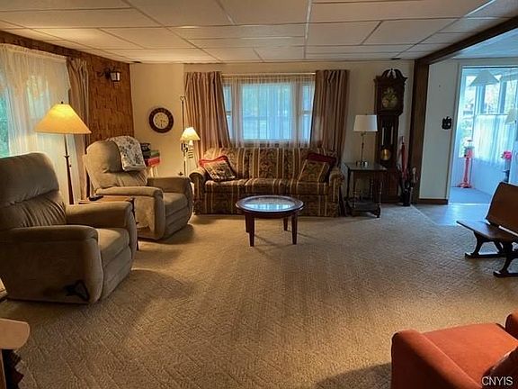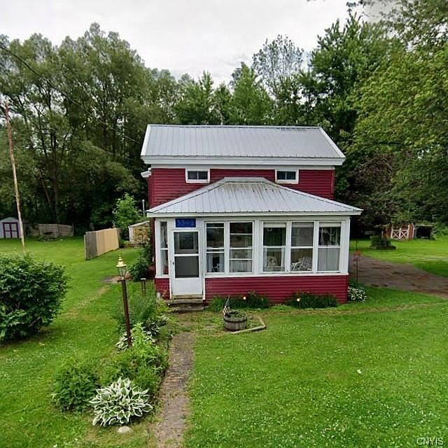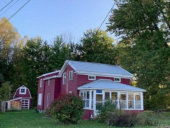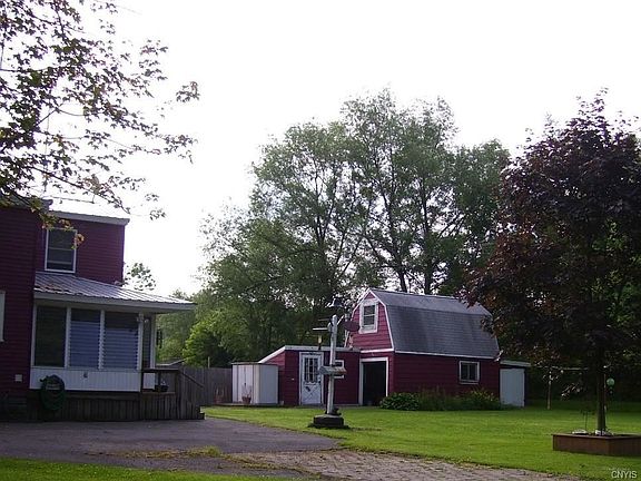 Amazing views from this 4 bedroom, 1500 sq ft colonial where the Seneca, Oswego and Oneida rivers merge, commonly known as the "Three Rivers" area. Enjoy the serene atmosphere as you watch the boats drive by from the enclosed front porch. Easy access to shopping and eating on Route 31, and only 3 miles from the Pirates Cove Marina! The house features extra large closets throughout the house, amazing hardwoods in the dining room, and a large, open kitchen waiting for your updates! The walkout basement can be easily finished. The yard boasts mature maples, as well as a shed and a 2-story barn with workshop. This is property is being sold in "as is" condition.