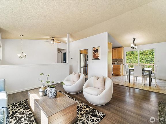 One-family owned gem in a quiet cul-de-sac! This split-level home offers comfortable living space with fresh exterior paint and room to make it your own. All bedrooms are conveniently located on the main floor, while the lower level features a bonus room, laundry area, and ¾ bath. Enjoy a spacious backyard with a large deck and covered patio—perfect for entertaining or relaxing. Move-in ready with potential to add value, all while being close to shopping, dining, and commuter routes. Priced at $574,990—an excellent opportunity in this Federal Way neighborhood!