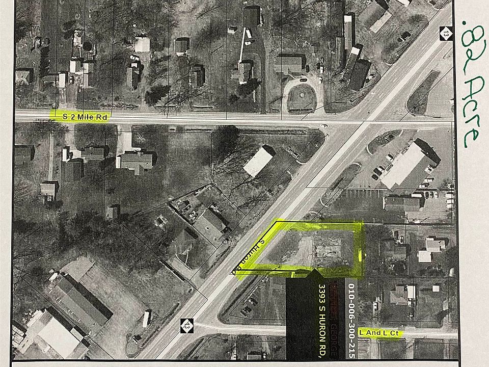 Prime commercial vacant lot in Bangor Twp - .82 acre with 147' of frontage on S. Huron Rd, located between Two Mile and L & L Court. Previously had a small strip mall on it with a Eureka Sales, a Counselor and a Dry Cleaner. Complete legal description is attached, along with recorded easement. Possibilities are endless for use of this property. It has been vacant for years. This is part of an estate.