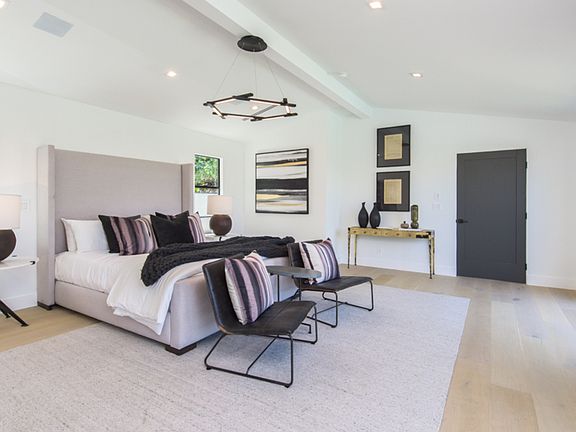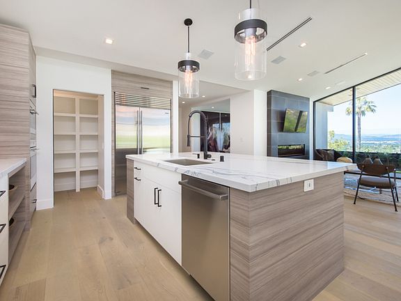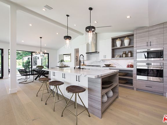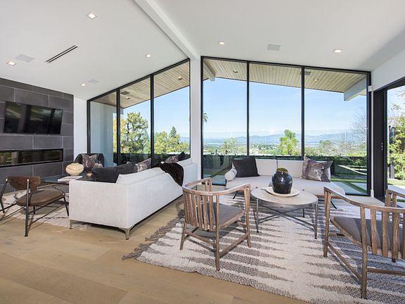 This 4 bedroom, 4.5 bath Contemporary mid-century modern home is masterfully designed and extensively renovated, capturing the essence of classic architecture. Open floor plan with white oak floors throughout offer a bright and airy feel with walls of glass and soaring volumes showcasing the expansive Valley views. A gourmet chef's kitchen features stainless steel Wolf appliances, custom cabinetry, a walk-in pantry, and large center island with breakfast bar. Luxurious master bedroom suite features a private fireplace, generous sized walk in closet and elegant bathroom with a soaking tub and greenery out every window. This home includes 3 additional en-suite guest bedrooms, a large laundry room with built-in cabinetry and a private office/bonus space. The seamless indoor outdoor flow leads you to a lush backyard with pool, spa, and seating area with fire-pit to enjoy the panoramic canyon and City lights. This property offers an elevated lifestyle with easy Westside access.