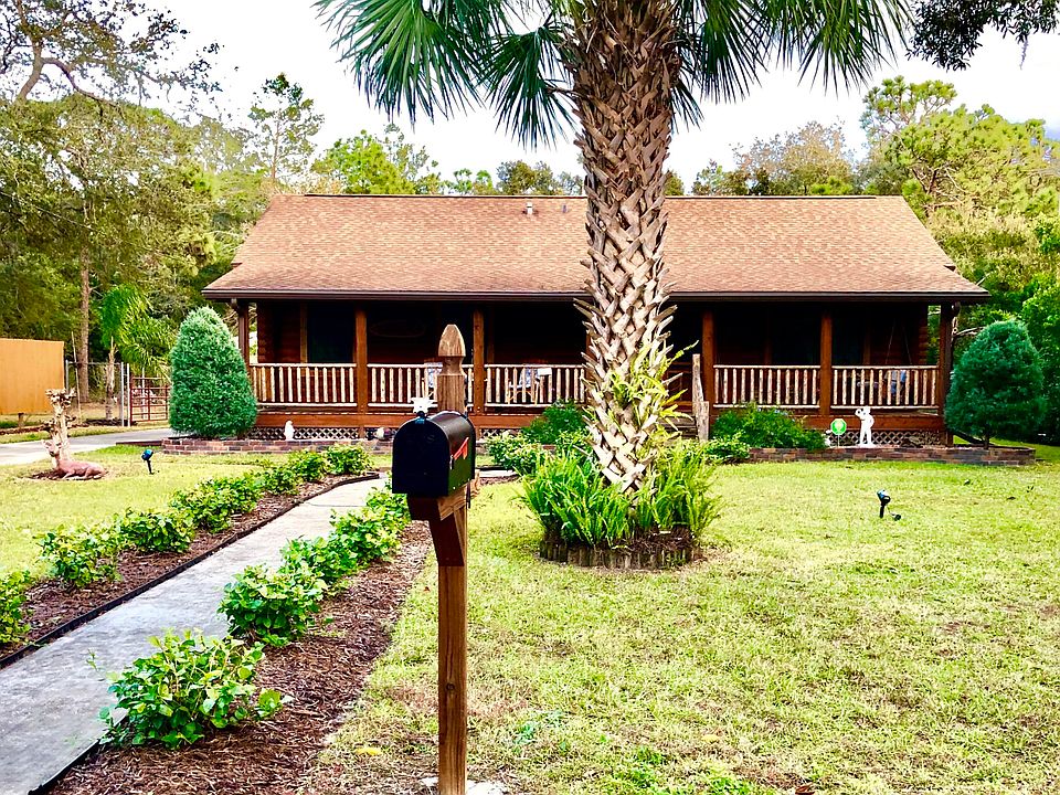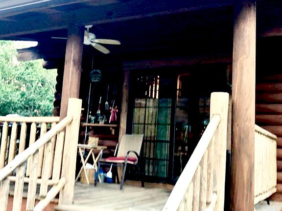 Well maintained 2/2 log cabin home with 25' high ceilings, stainless steel appliances, side by side fridge, central air and heat, wood planks throughout home. 33 x 35 detached garage or barn with additional washer and dryer hook-ups. 100 x 12 driveway; 9 foot high chain link fence; open patio measuring 12 x 14; front porch 12 x 44 long.