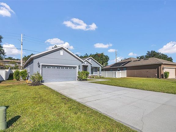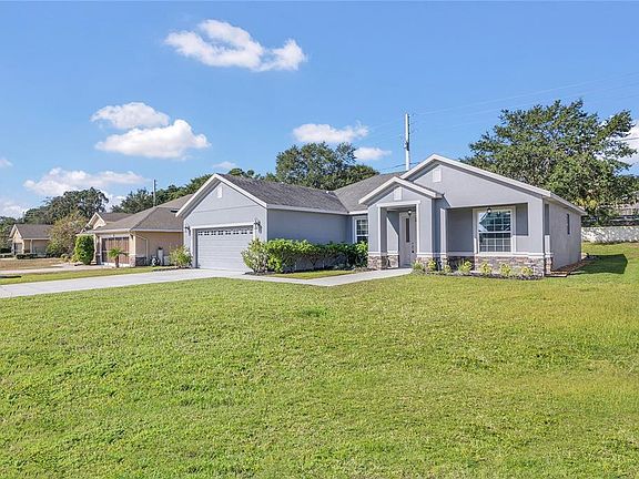 Welcome to the beautiful community of Emerald Pond in Leesburg! This wonderful 3-bedroom, 2-bath home is perfect for your family and features a formal dining area, ideal for gatherings and special meals. The open-concept living and kitchen area creates a spacious and inviting atmosphere, with the kitchen showcasing real wood cabinets, a pantry, granite countertops, a breakfast bar, and stainless steel appliances. The master suite offers a peaceful retreat with walk-in closets and a private ensuite bathroom, complete with a dual vanity and large shower. A split bedroom floorplan provides added privacy, with two additional bedrooms and a guest bathroom located on the opposite side of the home. Sliding glass doors from the living room lead to an open lanai, perfect for relaxing or entertaining. A dedicated laundry room and a two-car garage complete this fantastic home. Don’t miss your chance to see it—schedule a visit today!