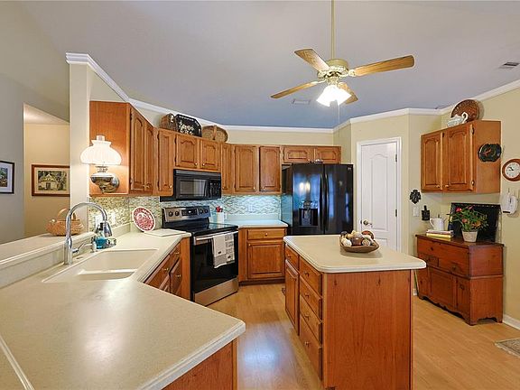Under contract-accepting backup offers. CHARMING 2 BEDROOM, 2 BATH HOME IN SILVER RIDGE - SPACIOUS AND STYLISH! Welcome to this beautifully maintained block and stucco home in the desirable Silver Ridge Subdivision of Leesburg! Offering 1869 square feet of comfortable living space, this home features a thoughtful layout with both formal and casual living areas. Step inside to find a formal living and dining room, a cozy den, and a bright dinette perfect for everyday meals. The enclosed lanai provides additional flexible living space and is currently being used as a home office and sitting area-ideal for today's living. Add a wall and you have a third bedroom. The kitchen boasts solid wood cabinets, Corian Countertops, a center island, tiled backsplash, and a pantry for extra storage. You'll love the volume ceilings, ceiling fans, solar fans in the attic that helps cool the home with the AC and neutral finishes that make this home move in ready. Practical features include an inside laundry room, Termite Bond, a two-car garage with work area, roof replaced in 2015 and HVAC replaced in 2017. Situated on a nice lot in a quiet, well-kept neighborhood, this property combines comfort, style and convenience. Located near shopping and restaurants don't miss the opportunity to make this inviting Silver Ridge gem your new home!
