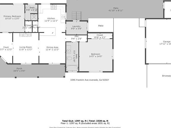 - Total interior livable area: 1,297 sqft