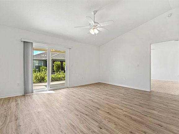 Now offered with a recent price improvement, this 3-bedroom cottage home is aggressively priced as if it were a 2-bedroom villa. The Villages are known for having a lifestyle with over 700 holes of golf, clubs for every endeavor, and shopping at boutique stores in several town squares with free live music every night. Enjoy golf cart access to pools, pickleball courts, recreation centers, and neighborhood events. Strategically priced below similar three bedroom, two bath cottage homes with a lower annual bond than new construction, this property blends desirable upgrades with a prime location near Brownwood Paddock Square. The exterior showcases a widened paver driveway, lush mature landscaping with two Robellini palms, and large flower beds. Inside, every room features a ceiling fan with upgraded light kits, the laundry offers built-in cabinetry, and the primary bath includes a frameless glass shower door. Gas appliances add efficiency, and bedroom three features a tinted window for added comfort. The screened lanai has been recently upgraded with privacy curtains, creating a versatile space to relax or entertain while maintaining seclusion. Ready for immediate occupancy. This listing will not last at this price.