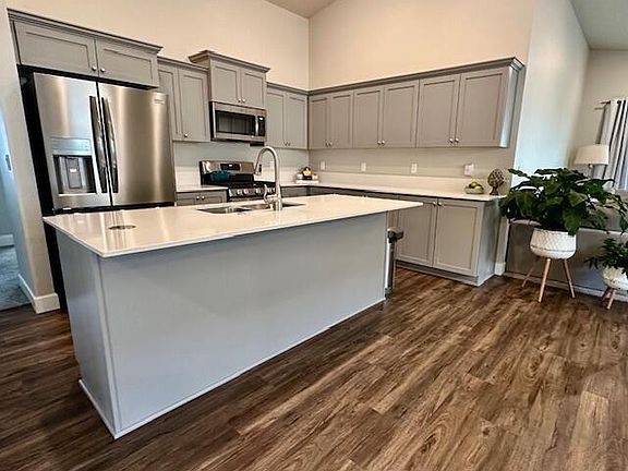 air conditioning, this home is sure to provide year-round comfort. The spacious kitchen is a true centerpiece, featuring a large island, quartz countertops, stainless steel appliances, pantry, and lots of room for entertaining.  Step into your primary suite, offering a generous walk-in closet and private bathroom complete with dual vanities.  Three additional bedrooms provide flexibility for guests, a home office, or your favorite hobbies.  Outside, enjoy a relaxing evening in your fully fenced backyard while unwinding in the hot tub.  Don't miss your chance to own this move-in ready, well-appointed home located in the Canyon Trails neighborhood.