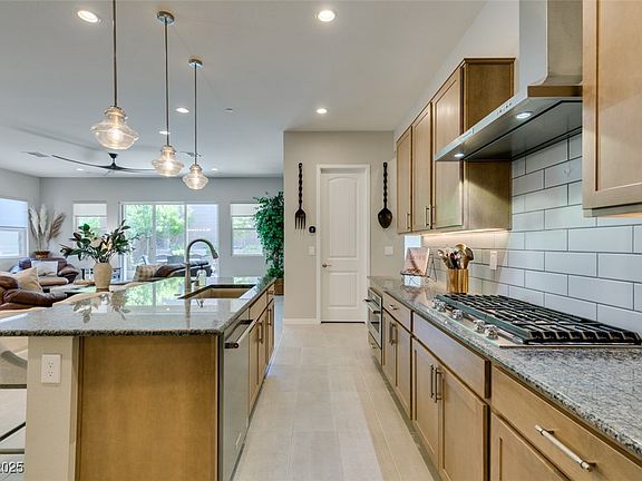 Step into this beautiful 2,276 sqft single story, 3 car garage Toll Brothers home in one of Inspirada’s all single story neighborhoods. You’ll love the open layout, 12’ ceilings, and tile flooring throughout the main living areas that keep everything feeling modern and easy to maintain. The kitchen is a standout, custom cabinets, granite counters, a big island for gathering, and all appliances included. A 10’ sliding glass door pulls in tons of light and opens up to a finished backyard built to enjoy, complete with a covered patio and custom firepit. The primary suite is tucked away for privacy, featuring a spa like bathroom with a large walk in closet. You’ll also find a second primary bedroom with its own private bath conveniently located. Bathrooms beautifully upgraded. The laundry room includes a sink and the garage features an exterior door, offering easy access and added convenience. This home is completely move in ready and truly even better in person, come see for yourself.