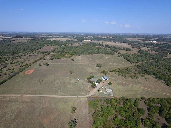 Scenic Cattle Ranch...Real family ranch set in some of the prettiest land you've ever seen. 60 fenced acres with a barn, and pond . Kitchen has solid surface counter top, new Anderson windows though out the house. Enjoy this traditional brick home with 4 bedrooms, office, 2 baths, storm cellar, generator, and much more.