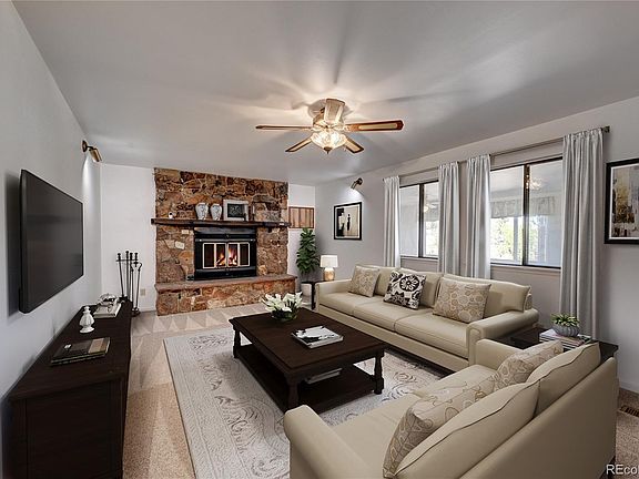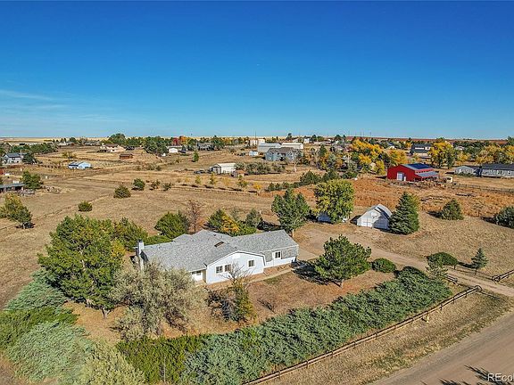 Great location in Prairie View! With potential for up to four bedrooms, this home offers 2,191 square feet, three-car garage, and 24`x22` outbuilding/barn on 2.81 acres. The living room features a fireplace and new carpet, adjacent to the enclosed patio overlooking the backyard and established trees. The kitchen has great cabinet space, double oven, and pantry closet, adjacent to the spacious dining area complete with a bay window. The primary bedroom offers two closets and an ensuite bathroom. Convenient office or 4th bedroom location near front entry. Private lot and expansive road frontage = great spacing between neighboring properties. Enjoy the benefits of living on acreage, with a convenient location and easy commute to Buckley AFB, Anschutz Medical Campus, Southlands Mall, Aurora, and Denver International Airport. Welcome home! ** New roof/shingles 2024 ** New carpet **