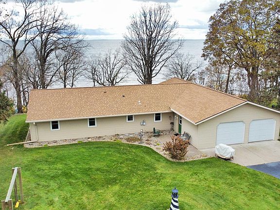 Who's dreaming of lounging on a sandy beach with family and friends? The beach may be buried in snow now, but in a few short months, I promise you won't be disappointed. This Mille Lacs Lake home has it all, complete one level living, attached 2 car garage, ceramic tiled kitchen w/breakfast bar, T&G finished sunroom w/ gas fireplace and patio doors to large lakeside deck. Living room has gorgeous views plus another fireplace. The in-ground sprinkler system keeps the lawn looking gorgeously green all summer long. There's plenty of places to store your toys with the oversized 2 car garage and storage sheds. Spacious fire pit area with electric outlet. Convenient RV parking with electricity is ready for your friends and family to come stay for the weekend. This property has been well loved and cared for, lots of new and updated features including roof, insulation and driveway. Dock included. Beautiful new pontoon with sea legs available to purchase separately. Septic is compliant.