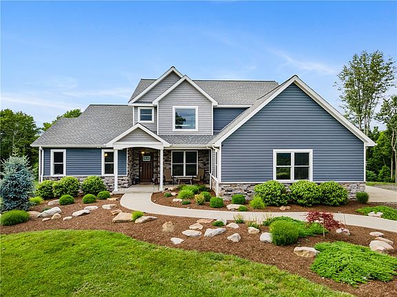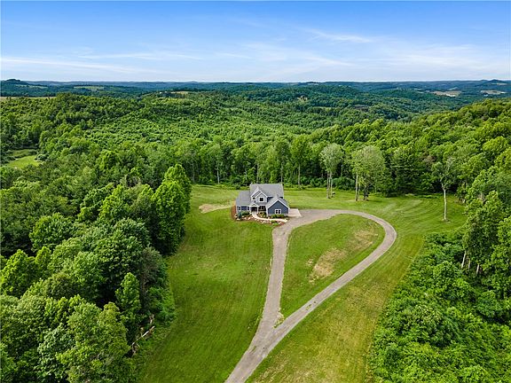 This magnificent custom-built home, completed in 2018, offers 20.5 acres of unparalleled seclusion and privacy. As you journey up the impressive 0.3-mile driveway, you'll immediately sense the exclusivity and tranquility that define this property, boasting breathtaking, unobstructed views of rolling hills, with not another house in sight. Step inside to discover a grand living space featuring a soaring 20-foot vaulted ceiling and a stunning wall of windows that stretch to the ceiling, framing the picturesque scenery. The primary suite features two walk-in closets, a freestanding tub, and an open-concept shower. The brand new, never-used 1,808 sq. ft. in-law suite in the basement is a standout, complete with 1.5 baths, a new kitchen, separate laundry, and a private entrance – perfect for guests or extended family. This home doesn't just offer luxury; it provides an unmatched living experience where the only competition is the stunning natural beauty that surrounds it.