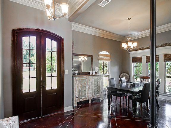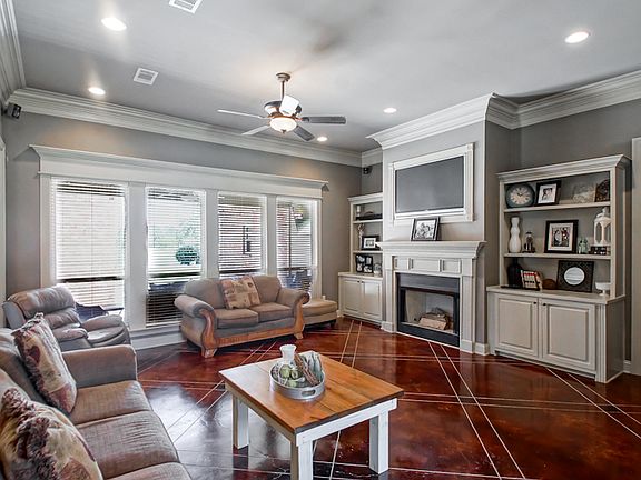 Come see what this custom built 4 bedroom, 3 bathroom home with a media room has to offer! The fourth bedroom can be used as a bonus room that has a bathroom upstairs. As you walk up to the front door you will see designer landscape and beautiful french doors. When you walk into the front door you are greeted with high ceilings, a foyer, a formal dining room to your left and the living room straight ahead. The formal dining room is spacious and large enough for entertaining. There is a wrought iron column that distinguishes the formal dining room from the living room. As you walk into the living room you will see a beautiful gas fireplace and built-ins on either side that are the focal point of the living space. The living room also offers a wall of windows for natural light and a beautiful lake view. The kitchen features a large island with drawers and a sink, glass front custom cabinets, lot of cabinet space and counter space, granite counter tops, and stainless steel appliances. The gas range is highlighted with custom cabinets that feature built in spice slide-outs. The master bedroom is spacious, features high tray ceilings, dual closets on either side of the entrance to the master on suite bathroom. The master bathroom features a custom tiled walk in shower with dual shower heads and a rain shower, a large jetted soaking tub, and dual vanities. The additional bedrooms are spacious, have high ceilings and nice closet space. As you walk upstairs from the kitchen you will see a large spacious bonus room which would be great for a game room. There is also a full bathroom and media room upstairs as well. The fourth bedroom/bonus room has a balcony that over looks the patio area and large backyard. As you walk out the back door you will see a large spacious outside patio with a bricked fireplace that is great for relaxing and looking out to the beautiful lake view. The home features two storage rooms and a California garage. Home did not flood in August 2016.