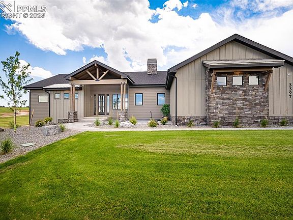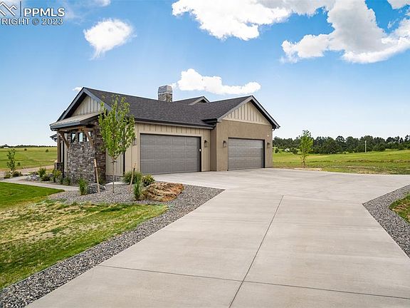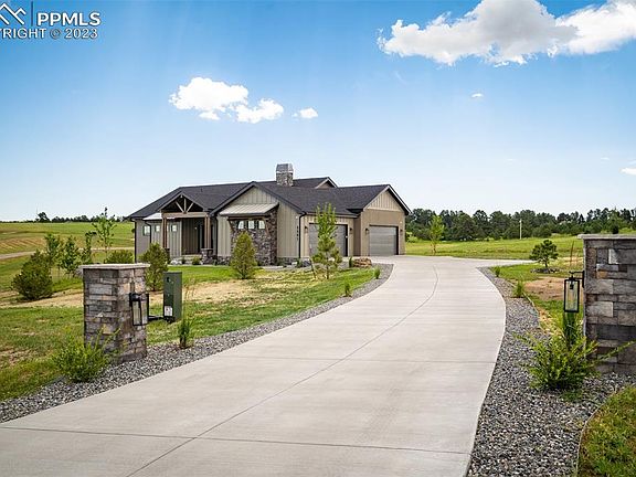 Your dream home awaits in this newly constructed custom ranch style home located in Rollin Ridge Estates! Easy access to Colorado Springs and Denver and situated on a 2.5 acre lot, this 5 bedroom 6 bathroom home with a 4 car oversized garage has it all! You'll be amazed upon entering this home with the white oak floors & 12 foot ceilings that lead from entrance to great room. There will be plenty of space to relax or entertain in this huge open gourmet kitchen with walk in pantry, stainless steel appliances, solid quartz countertops with large overhanging island with plenty of seating space & additional dining area. Imagine relaxing after a long day on the large covered deck on main level that walks out from master bedroom, great room and kitchen. The large master bedroom on the main level features 5 piece bath with recess shower, dual vanity, and free standing tub. There is also a guest bedroom, laundry room & media/tech/office space on main level. The lower level basement has 3 bedrooms with bathrooms, walk in closets, a spacious living room with an appliance filled wet bar, hobby room with washer/dryer hookups & additional storage/wine room. With many more features this masterfully crafted home is a must see!