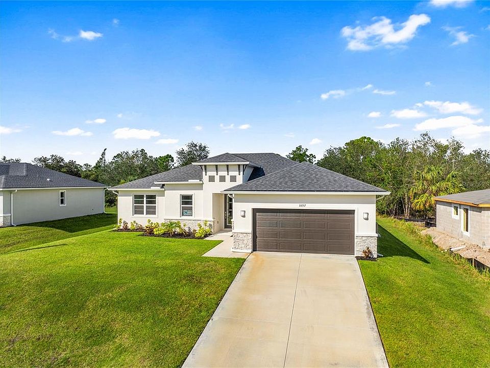 MOVE IN READY! NEW CONSTRUCTION! NO HOA, NO CDD, NOT IN A FLOOD ZONE! Beautiful 3 bedrooms plus bonus room, 2 bath split floor plan with clean, modern lines. Home includes 9'4 ceilings, 42' inch upper cabinets with dove tail drawers, quartz countertops throughout, Samsung kitchen appliances, luxury tile plank flooring throughout home, open floor plan, energy efficient with SPRAY FOAM insulation in trusses and in block with hybrid water heater. North Port is one of Florida's fastest-growing cities, offering the perfect combination of affordability, convenience, and quality of life. With a strong sense of community and a wide range of amenities, its a great place to live, work, and play. The city is also home to the North Port Aquatic Center, Atwater Community Park, and many other recreational spots for residents and visitors alike.