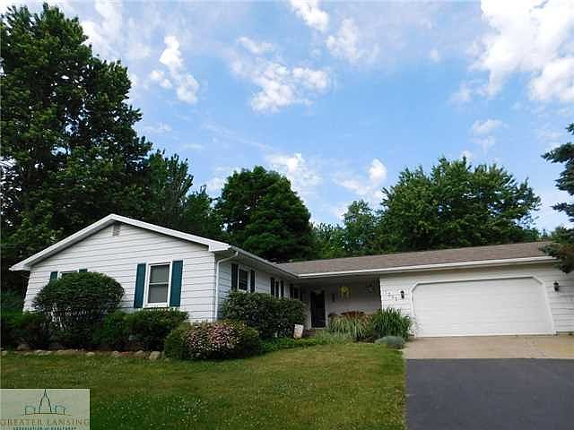 4 bdrm, 2.5 bath ranch, updated mechanicals, pole barn, deck, fenced back yard, large pond, great landscaping. Located on a private drive off Wirt Road. Great place to live & play. Easy access to MSU, 127