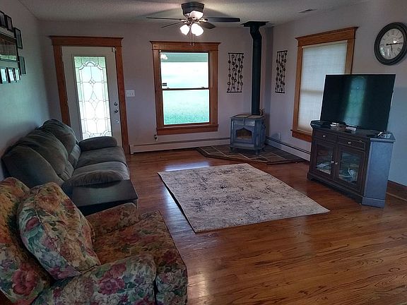 Country home you can afford is here. Located in the heart of the beautiful Flint Hills. This home has an open floor plan and flows well. Wood stove in the living room. Wood floors in living kitchen and dining room. Custom cabinets with eating bar. You will love the wall of windows in the kitchen/dining area to enjoy the spectacular view. Master bedroom has plenty of room with double closets and large bathroom. Relax on the front porch or the back deck as watch the sun go down. Detached 3 car garage 30 x 30