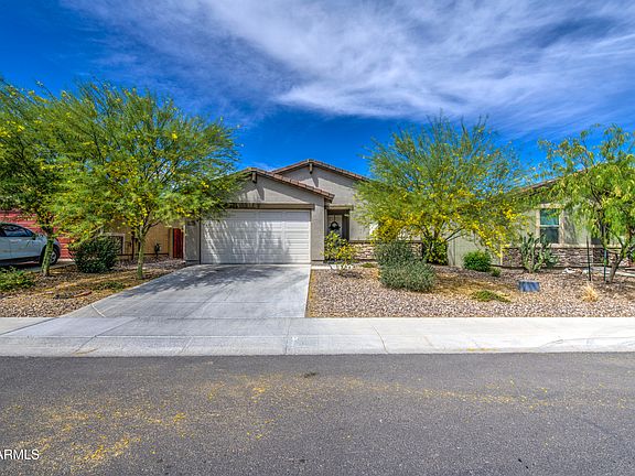 Looking for a recently built, move-in ready home that's close to everything Queen Creek has to offer while still being affordable? Welcome home! This stylish, 4-bedroom home is move-in ready. Inside, enjoy a bright and open layout featuring neutral tones, recessed lighting, and easy-care tile in common areas. The modern kitchen showcases stainless steel appliances (including a gas cooktop), granite countertops, white shaker cabinets, a pantry, and a breakfast bar island with pendant lights. Unwind in the main bedroom with its ensuite bathroom, complete with dual sinks and a walk-in closet. Step outside and enjoy the privacy of no neighbors behind and no neighboring two-stories, while taking in the desert mountain views. The backyard is fully landscaped and ready to relax or host... ... complete with a covered back porch, year-round green artificial turf grass, and pergola with flagstone hardscape. When you see this home in person you will be pleasantly surprised by the condition and pride of ownership. This home is located minutes from the San Tan Mountain Regional Park trail head where you can hike, bike or ride in the San Tans. The opportunity for affordability, lifestyle, and a convenient location paired with privacy could be yours.