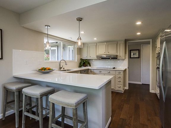 This picture perfect 3BD/2BA home, located in the hills of San Carlos, has been remodeled with contemporary finishes, including wide-plank laminate flooring, slab countertops, contemporary lighting, and designer hues throughout. Features an ideal floor plan with an open concept eat-in Kitchen/Breakfast Bar and adjoining Family Room with glass doors to rear deck, perfect for entertaining. The expansive Living Room boasts plenty of room for an oversized Dining Area and boasts sweeping canyon views. The Master Bedroom Suite features an oversized walk-in closet, glass doors to rear gardens and remodeled dressing area with marble-topped double vanity. Two additional spacious Bedrooms, updated Hall Bath, Laundry Area and 2-Car Garage with open Attic for storage, complete this picture perfect home.