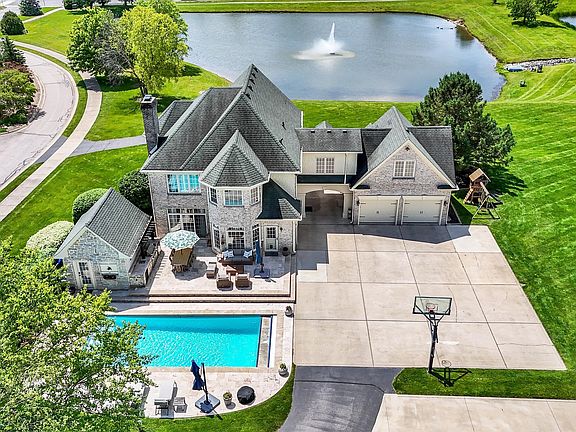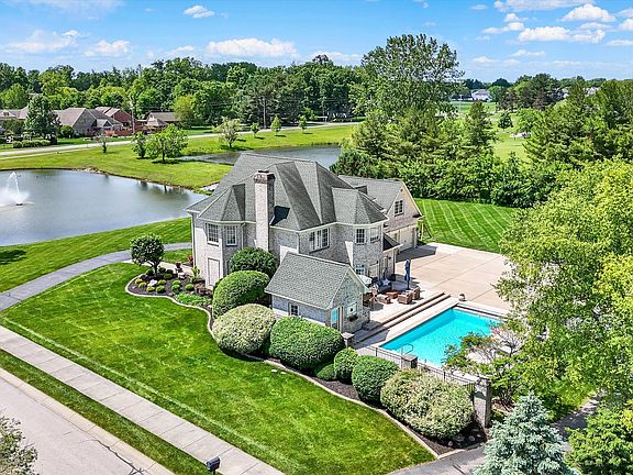 Welcome to your dream home, a stunning custom residence set on 3.5 acres with serene pond views. Enjoy your own private retreat with an in-ground saltwater pool, pool house, outdoor kitchen, basketball court, putting green, and a stocked pond perfect for fishing, paddleboarding, or kayaking. Designed for both entertaining and comfortable daily living, the open floor plan features a gourmet kitchen with a large center island, granite countertops, KitchenAid appliances, a walk-in butler's pantry with wine fridge and ice maker, and a bright breakfast room that flows into a spacious great room with a cozy gas fireplace. Wide plank hardwood floors, a formal dining room, and a private office with custom built-ins complete the main level. The luxurious primary suite includes a lighted tray ceiling, a spa-like bath with double vanities, soaking tub, walk-in tiled shower, and a walk-in closet with customized organizers. Second and third bedrooms share a jack and jill bath and feature walk-in closets. The upstairs flex room easily works as a fourth bedroom or a home gym and spacious family room. A convenient second-floor laundry room and dual staircases enhance functionality and ease. Additional features include a two-car attached garage with a drive-through portico and a two-car detached garage with approximately 400 square feet of finished living space-ideal for a man cave, workshop, or creative studio. Just minutes from Downtown Plainfield, the Aquatic Center, and the Vandalia Trail, this exceptional property offers luxury, and an unbeatable location-truly a rare gem!