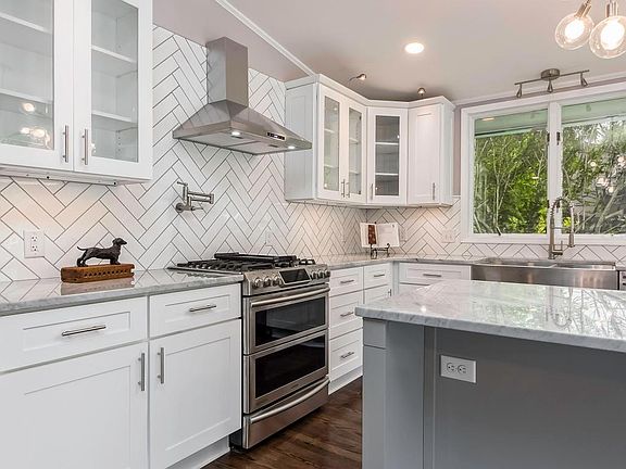 Updated and gorgeous! Open floor plan with vaulted ceiling and dark stained hardwoods throughout the main level. New kitchen with Samsung Chef's collection stainless appliances, pot filler faucet, Carrera marble countertops, subway tile back splash, over-sized island with bar stool seating. Newer Anderson windows, new roof, newer furnace, new electric throughout, new plumbing. Owner's suite with new full bath including custom tile, custom lighted mirror. Updated hall bath with tile floor, subway tile surround, new vanity, mirror/lighting. Updated trim and doors throughout. Full basement offers an additional bedroom, plus a large entertainment room. Three season room, paver patio, paver fire pit, brick driveway, fresh exterior paint. Walk to Kingsdale/Tremont/pool. Agent related to seller.
