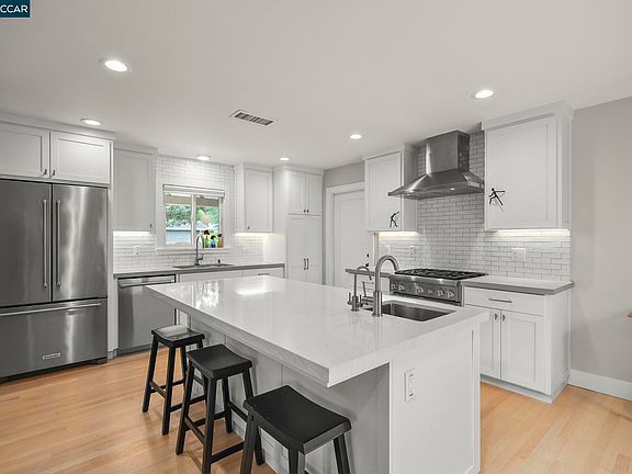 NOT TO BE MISSED! This absolutely stunning home offers refined living with exceptional privacy, views, and timeless updates. A spacious open great room is the heart of the home, featuring a chef’s kitchen with Thermador gas range, Bosch built-in microwave, prep-sink, island and elegant white shaker cabinetry, all bathed in natural light from expansive Pella French doors. Wood floors throughout (except baths), smooth interior walls, and tastefully renovated bathrooms showcase quality craftsmanship, while the primary suite with retreat/office provides a serene escape. Perfect for entertaining, the freshly stained backyard deck frames tranquil vistas. This home has been meticulously maintained by the long-time owner to ensure lasting beauty and function. Even the fire-hardening has been completed. Ideally located near award-winning Lafayette schools (1.8 mile to Burton Valley; 1.1 mile to Stanley Middle, and 3.7 miles to Acalanes High), town, scenic trails, freeway access, and just 1.8 miles from Lafayette BART, this home combines luxury, convenience, and sophistication.