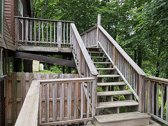 Duplex is on the 2nd floor. Has a large deck with the river outback. There is also a small shed.