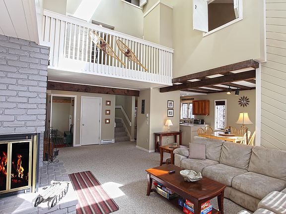Nestled amongst the trees, this cozy 4 bedroom, 4 bath Suntec townhome with large windows overlooking the forest and located only a mile to Mount Snow, with access to snowmobile trails, shuttle service to and from the main base area and a quick drive to nearby Wilmington. This spacious three level townhome with a large open concept floor plan, vaulted great room features rustic wood paneling, a wood burning fireplace with painted brick hearth, a sun filled dining room with wood beams and a kitchen with breakfast bar. To complete the main level is a hot tub room with sauna and a full bath. On the second level you'll find a large primary bedroom with vaulted ceilings and an ensuite bathroom, and two additional generous sized bedrooms with shared bath. The third floor offers a large suite for overflow sleeping or office space and a fourth bathroom. This townhome also has a large deck for outdoor entertaining and a covered entry with plenty of storage. Association amenities include an outdoor pool and tennis courts for more recreational fun. This is the ideal location for all seasons!