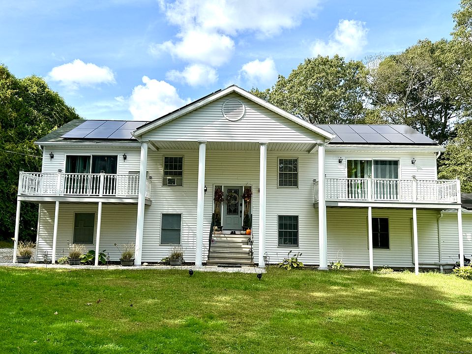 At 33 D Laurel Point Drive, you will find serenity and peace in this sprawling 6-bedroom, 3-bathroom property with water views and ambiance. This is a spacious, renovated six-bedroom-three-bathroom combining modernity with nature. This home boasts generous living spaces, including a bright and airy great room with cathedral ceilings and breathtaking lake views. A fully finished walk-out basement adds a second family room and a summer kitchen, perfect for lakeside entertaining. There are three spacious bedrooms and two full baths can be found on the upper level, while the lower level features a separate wing with three additional bedrooms and another full bath, offering privacy and flexibility. There is a modern chef's kitchen with new appliances, abundant storage space, and plenty of room for meal preparation and casual dining. There is a lot to enjoy outside, with three separate decks and a lighted stone patio providing multiple vantage points to enjoy the peaceful lake setting. Upgrades Include: A 2023 rebuild includes hickory laminate flooring, new carpeting, energy-efficient heating and cooling systems, and soft-close kitchen cabinetry. This property is a truly unique opportunity to own a spacious, modern lakefront home with spectacular views and loads of room for family, friends or privacy. Do not miss your chance to own a piece of serenity tucked away in Oakdale, CT. Full house upgrades include: A New Addition that added Two Bedrooms and Attic Space 4 New Mini Split Units with Heat/AC/Dehumidifier - has a 10 Year Warranty Installed Dimming Ceiling Fans on both Levels Added an Electric Fireplace and Mantle Remodeled Main Kitchen with Butcher Block Counters and Tile Backsplash with Brand New Stainless Steel Appliances Renovated Bathrooms with New Showers and Tile with Bluetooth Fans and Lighting, New LED Vanity Mirror and Sinks California-style Closet System in Primary Bedroom Brand New Septic System and New Leech Field Owned a Large Capacity Propane Tank, installed and New Gas Line into the house. A New Walk Way Added a Gravel driveway New Gutters with Leaf Guards New Solar panels with a monthly at $267.00
