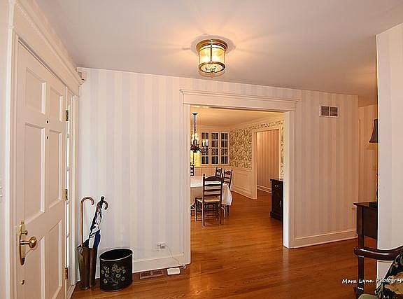 Beautiful ranch home nestled on 4.5 acres of professionally landscaped grounds with stunning views out every window ~ so much privacy tucked back from the road! Skylights throughout the home help to bring in more natural light and showcase the gorgeous property! Expansive gourmet kitchen with cherry cabinets, Gaggenau double ovens and cooktop/griddle, Northland fridge, wine cooler, huge island, corian countertops and tile backsplash! Open floorplan leads into the cozy family room with hardwood floors, beamed ceiling and woodburning fireplace*Beautiful dining room with built-ins, extensive trimwork and updated light fixture*Living room features a wall of built ins, gas fireplace, hardwood floors, crown moulding and a large bay window with stunning views to the back of the property*Spacious owners suite with hardwood floors, crown moulding, gas fireplace, built-ins, skylights and French doors to private deck! Updated en suite bath features double sinks, separate shower, large soaker tub and two walk in closets! 3 additional bedrooms and a full guest bath too ~ 4th bedroom is currently used as an office and features built ins and hardwood floors*And the place you will want to spend your time? Check out that sunroom with vaulted ceilings, tile floors and access out to the back deck! Yard is professionally landscaped and offers peaceful views - the perfect place to relax on those summer evenings! There is also a 4 stall barn with tack room and is equipped with electric and water*HVAC new in 2019*Roof approx 10 years old*Alarm system*Invisible fence*Check this home out today and enjoy all it has to offer!