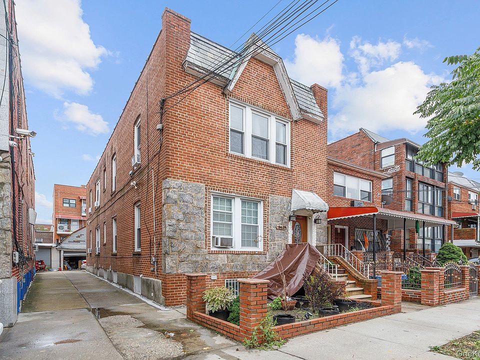 Solid brick two-family house featuring 2 bedrooms, a living room, and an eat-in kitchen in each apartment. The fully finished basement with a separate entrance adds extra space and flexibility. Enjoy a shared driveway leading to a two-car garage — rare in this area!