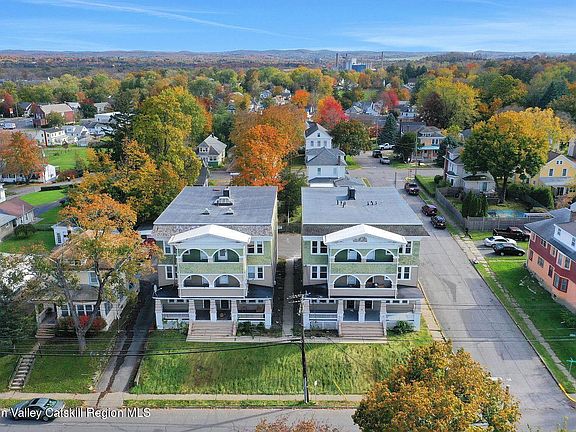 Discover Fairview Commons — a pair of well-kept multifamily buildings at 34-36 Fairview Street in Hudson, New York. Twelve bright, spacious two-bedroom apartments sit behind classic porches and crisp lines, the kind of architecture that feels both sturdy and intentional. The buildings mirror each other across a quiet, tree-lined street, offering a clean, well-scaled investment that performs as well as it presents.