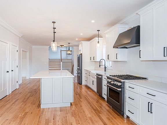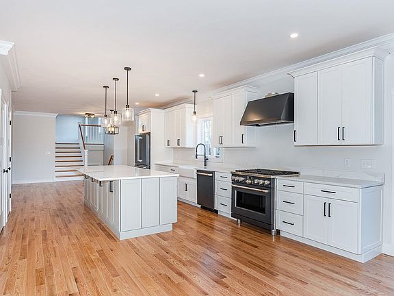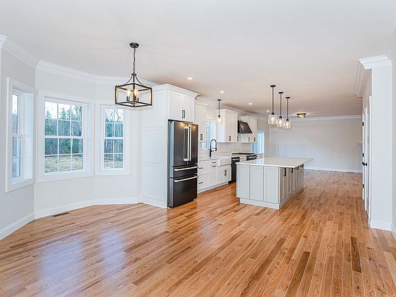 Discover the allure of this charming new construction nestled in the tranquil cul-de-sac of Plaistow, NH. A picturesque farmer's porch welcomes you to this modern colonial featuring a spacious 2-car garage. Inside, the allure continues with a modern kitchen boasting white shaker cabinets, matte black cafe appliances, a center island, and a cozy breakfast nook. The open layout dazzles with gleaming hardwood floors, a living area enhanced by a coffered ceiling and gas fireplace, and a formal dining area adorned with custom wainscoting and a tray ceiling. An additional oversized family room beckons, perfect for entertaining. Travel to the second floor to find a luxurious master bedroom with an en suite bathroom and three additional generous bedrooms. Outside, the expansive yard offers a serene country-like setting, completing this ideal home that balances modern convenience with timeless charm. Explore this gem and make it your own!