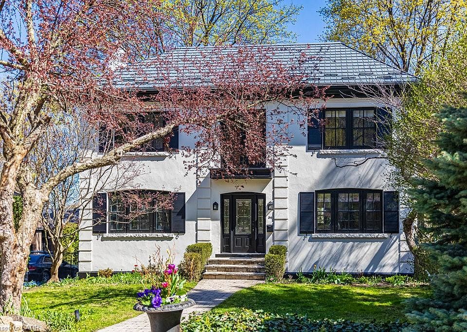 Welcome to this prestige, hidden jewel on one of Hamilton's most premier streets. Just steps from vibrant Locke Street, this beautifully updated West End classic blends timeless charm with thoughtful modern upgrades on a large, landscaped lot featuring mature trees, a tranquil pond, and front yard irrigation. The double-brick home with updated stucco and a striking metal roof offers exceptional curb appeal. Inside, a bright center hall plan showcases original dark oak floors throughout - including a three-storey rear addition. The sun-filled living room features a new gas fireplace (2023), French doors, and a cozy sunroom, while the formal dining room is ideal for entertaining. The custom kitchen boasts engineered recycled quartz counters, built-in appliances, a gas range, adjacent powder room, bar area, and ample storage. Upstairs, the spacious primary suite includes a sitting area, walk-in dressing room, luxurious 5-piece ensuite, with access to a private composite deck. Two additional bedrooms - one part of the addition share an updated main bath with double vanity. A laundry chute connects to the lower level for added convenience. The walkout basement offers future potential with rough-ins from a former bath and access below the rear addition and composite decking Lovingly maintained with original features like horsehair plaster and storm windows, this rare gem offers character, comfort, and location close to top schools, transit, the GO station, and ready access to trails, Chedoke Golf course and highway access. Don't miss this opportunity to own a piece of Hamilton's heritage, refreshed for modern living.