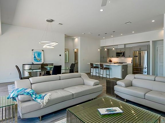 Truly One-of-a-Kind Property! This exceptional combined end unit boasts a rare, extra-long water frontage complete with space for a 38' boat along a brand-new seawall. Enjoy a spacious 60' private accented with cable wire enclosure, brick-paved patio perfect for outdoor dining and entertaining—right outside your door. For privacy on the patio a new planter wall with irrigation was designed. This patio space and vistas are the best and can not be replaced!! Inside, you'll find a stunning, state-of-the-art kitchen featuring stainless steel appliances, new cabinetry, and recessed lighting throughout. The primary bedroom has doors leading to the patio for great morning coffee and afternoon cocktails. The primary bedroom has a beautiful bathroom with tub and walk in shower. The closet has been outfitted with custom features. This modern, low-maintenance condo is truly special. Convenience is key, with easy parking just steps from the front door, two contiguous golf cart garages upgraded with electric roll down doors and direct ocean access. You're also within walking distance of the private airstrip—making this the ultimate condo for seamless travel by land, sea, or air.