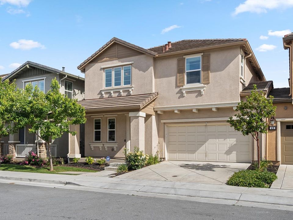 This charming home in Monterey Manor is like new and is the desirable Pinot Noir floorplan and plenty of natural light! The downstairs features an open layout with a living room, dining, kitchen combo with dark hardwood throughout. The kitchen features an island, granite countertops, GE Profile stainless steel appliances, and a walk-in pantry. In addition, there is a bonus room that can be used as a kid's play area, office space, or additional living space. Upstairs features 3 bedrooms, including an ensuite master bathroom and walk-in closet. Additional upgrades include a tankless water heater, epoxy floors in the garage, and owned solar panels to offset electrical costs. The backyard has plenty of space to entertain with pavers and also an artificial grass space. To round it out, this home is in the perfect location -- walking distance to downtown which features many restaurants and the CalTrain station, and is close to 101 for easy commuting. This one is not to be missed!