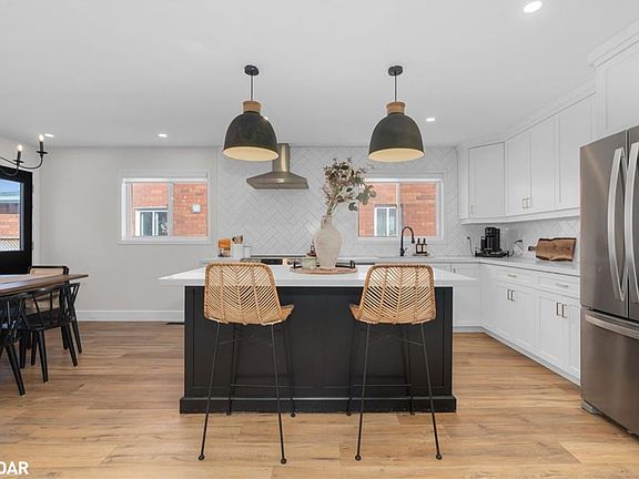 Nestled in the family-friendly Holly neighborhood, this 3 bedroom bungalow is the perfect place to call home. Located on a quiet cul-de-sac, it’s just minutes from top-rated schools, a fantastic community center, parks, and everyday shopping—everything a growing family needs! Commuters will appreciate the quick access to Highways 27 and 400, making daily travel easy. Inside, the main floor features three well-appointed bedrooms and two beautifully updated bathrooms, complete with granite countertops and modern vanities. The stunning kitchen, renovated in 2021, is a true showpiece, featuring custom cabinetry, sleek countertops, and a spacious 6-ft island, perfect for family gatherings and meal prep. New appliances and durable vinyl flooring add both style and functionality. The lower level offers even more living space, a three-piece bath and family room. Easy-to-maintain laminate flooring and convenient main-floor laundry make everyday living effortless. Step outside to the oversized, fully fenced backyard, where a large lawn and spacious deck provide the perfect space for kids to play, summer barbecues, and family gathering. The roof was replaced in 2018. This home truly checks all the boxes—don’t miss your chance to make it yours!