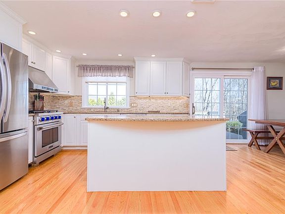 Step into this elegant colonial home flooded with natural light, featuring a perfect 4-bedroom layout. As you enter, hardwood floors gleam underfoot, complementing tasteful paint choices throughout. Entertain effortlessly in the spacious front-to-back living room, while the kitchen awaits with its white cabinetry, granite countertops, stone backsplash, Chef's Stove, and expansive island centerpiece.Connected seamlessly, the kitchen extends to a charming dining room adorned with wainscoting and a cozy family room boasting a wood-burning fireplace. Convenience awaits on the first floor with a laundry room, half bath, and storage pantry. Head upstairs to find the sizable primary suite, boasting double closets and a beautifully tiled shower enclosed in glass. Three additional bedrooms share a fully renovated bath on the second level. For relaxation and recreation, the lower level offers an inviting space for exercise and family enjoyment. Step outside to discover your own private oasis, meticulously landscaped with irrigation, a patio, and deck – perfect for outdoor gatherings, play, and gardening. Embrace energy-efficient living with newly installed heat pumps (2022) providing heating, cooling, and hot water. Located in a coveted North Cumberland neighborhood, enjoy easy access to major highways 295 and 95, making commutes to Boston (50 minutes) and Providence (20 minutes) a breeze. Don't miss the opportunity to make this stunning home yours.