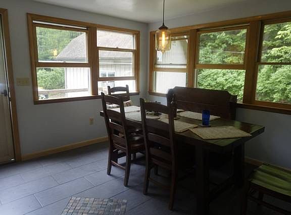 Pristine cabin located in the Slide Mountain wilderness of beautiful Woodland Valley, 5 minutes from the heart of Phoenicia. Hardwood floors throughout - newly installed in the 2 large updated bedrooms. Master bedroom has a full bath; second bedroom has a washer/dryer. River rock stone fireplace with wood burning stove and delightful sun room for dining, peaceful yard with fire pit. Electric service upgraded to 200 amps. Terrific storage in 2 outbuildings - an amazing garage and a cute white shed for firewood. 5 minute walk to fishing on the Woodland Valley Creek which leads into the Esopus. Join the locals at the Phoenicia Diner, Tavern 214, Sweet Sue's and other eateries. This rustic, updated cabin is 4-season ready and can be enjoyed as a full-time residence or a weekend getaway. Excellent income producer as an airbnb and vrbo rental when not enjoyed by owners. Furnishings available for purchase, offering a move-in ready mountain retreat!