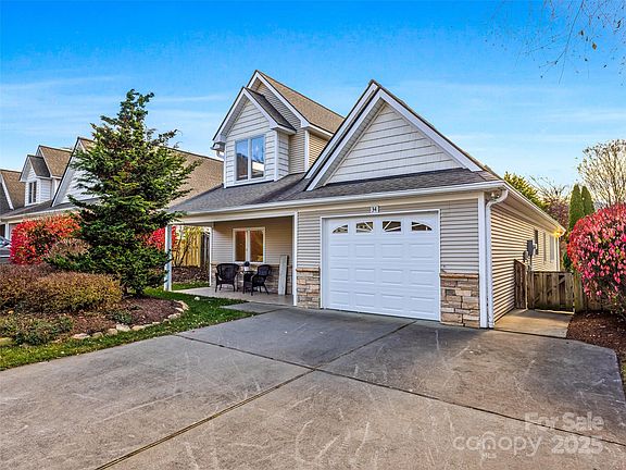 Like new Arts & Crafts style cottage nestled on a charming "Hallmark"- style neighborhood, just minutes from Black Mtn & Asheville! Step inside to an impressive light & bright open floorplan, boasting vaulted ceilings & expansive windows that invite the outdoors in! Enjoy cozy evenings with next to the gas burning fireplace, while the newly remodeled interior features new kitchen cabinets, granite countertops, spacious pantry, center island, new SS appliances, luxury vinyl plank flooring, new carpet, and beautifully updated bathrooms. The main-level primary w/ en-suite offers convenience and comfort, while the upper-level primary retreat includes, reading nook, spa style en-suite cathedral ceilings, large windows w/breathtaking sky views. The 3rd main level bedroom makes an ideal office, art studio, or guest room. Enjoy the glorious Mountain seasons from the front and back covered porches & tranquil picturesque fenced backyard, HOA covers front lawn maintenance, mulching & more - Move in ready! Must see!