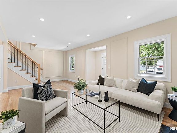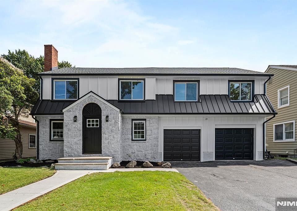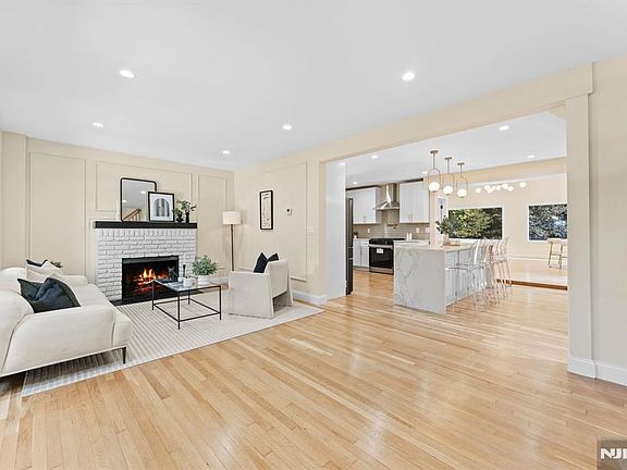 Borderline Paramus Stunner! This fully renovated and expanded single family gem sits on a 9,718 sq ft lot and showcases 4 bedrooms plus an office and 3.1 bathrooms. Step inside to a thoughtfully designed layout featuring a spacious living room, an oversized kitchen with a waterfall-edge quartz island, and a massive family/living room combo with tinted modern windows and direct access to a large deck overlooking the backyard. Designer light fixtures illuminate every space, while a stylish full bath completes the main level. Upstairs, you'll find four bedrooms including a serene primary suite with a luxurious double vanity bath and a perfectly sized bonus den. The fully finished basement offers a half bath, central A/C and forced hot air, a two car garage, and a driveway that fits four more vehicles. All just minutes from Westfield Garden State Plaza and major highways, an immaculate masterpiece ready to move right in!