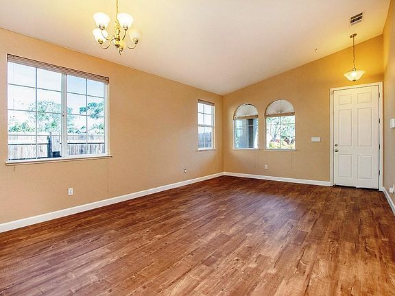 GREAT LOCATION SINGLE STORY, Freshly painted with new laminate flooring and carpet. 4 bedrooms and 2 bath with spacious kitchen, breakfast bar, Living room dinning combo, vaulted ceilings, recessed lighting, cozy fireplace in family room, slider to patio in large yard with garden ready to plant. Walk to K-8 schools and parks.