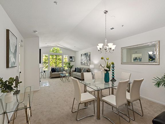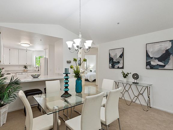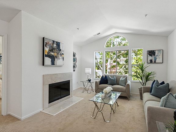 Tastefully upgraded with designer-selected finishes, colors, and materials in this single level 2 bed, 2 bath condo. This second floor vantage point has no units above. Front exterior patio provides the perfect location to take in the outdoors, entertain, and monitor children's play just outside the kitchen. The kitchen boasts a large bar counter which opens to the LR/ DR combination accentuated by a dramatic cathedral ceiling. The stone facade fireplace makes for a perfect cozy setting. A luxurious main bedroom offers an outdoor balcony ideal for taking in the morning. Separate toilet room with shower over tub. The sink area boasts an expansive counter for an ideal prep and go' experience. Separate storage room. Separate laundry room. Private garage with auto door and additional storage, plus an additional outdoor parking space. This unit is set in quiet, nature-rich surroundings with walking paths and hiking trails. HOA dues include a pool and other amenities.