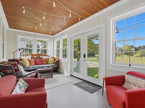 Enclosed porchAccent wall tilesDining areaGleaming hardwood floorsFantastic storageExpansive windowsLight filled enclosed porch