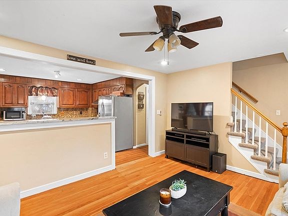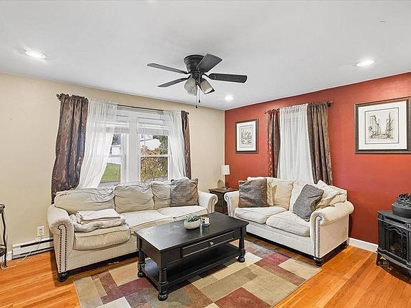 Welcome to your charming new home! This adorable FOUR bedroom, 2 full bathroom Cape invites you in with its warm hardwood floors throughout, creating a cozy atmosphere. The open-concept living/kitchen make a great space for entertaining & the propane stove is wonderful for those chilly months. The updated kitchen is a chef's dream, boasting granite counter tops, a matching granite backsplash, convenient island, S.S. appliances & separate entrance for easy access. Two of the four bedrooms are located on the 1st floor, offering flexibility & convenience, while the other two are located on the 2nd floor. The primary bedroom w/ slider door leads out onto the freshly-painted back deck overlooking the spacious, fenced-in yard. The finished basement adds even more versatility with additional living space & full bath. And, to top it off, a 1-car garage with off-street parking completes this picture-perfect home. Don't miss the chance to call this perfectly-located gem yours!