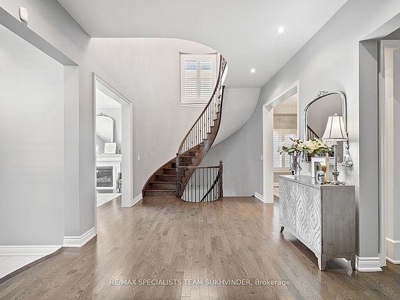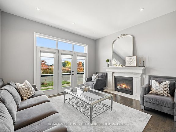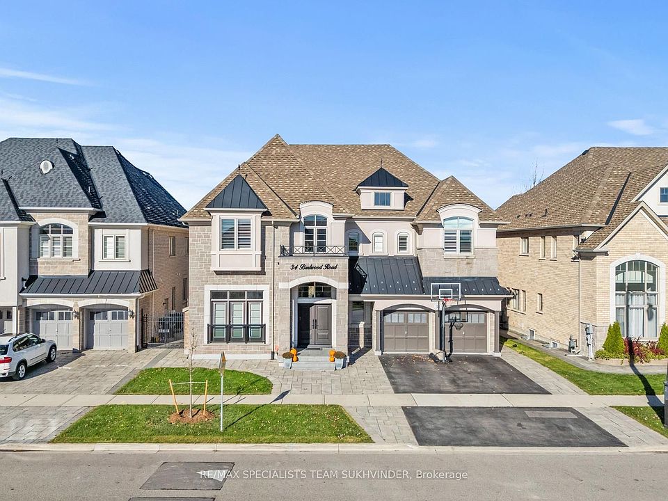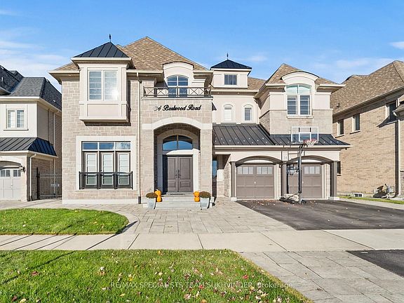 Welcome to the epitome of luxury in the prestigious Pavilion Estates community! This absolute showstopper boasts over 5,100 sq. ft. of mesmerizing elegance, surrounded by grand homes and showcasing true craftsmanship at every turn.From the moment you arrive, you'll notice the interlocked driveway and 3-car tandem garage, perfectly complementing the home's stunning exterior and its prime location facing a beautiful pond.Step inside to 10-foot ceilings on the main floor and 9-foot ceilings upstairs, highlighted by an open-to-above foyer and a seamless, functional layout designed for modern living. The chef's kitchen features built-in appliances, quartz countertops, and flawless finishes that impress at every glance.Upstairs, discover 5 spacious bedrooms, with 4 full washrooms, and a second floor laundry adding convenience. The primary retreat includes a spa-like ensuite and a private balcony overlooking the tranquil ravine.The fully landscaped backyard and covered loggia provides the perfect space for entertaining or quiet evenings surrounded by nature. Located just steps from schools, parks, and public transit, this home truly delivers upgrades galore and an unmatched level of sophistication and comfort.
