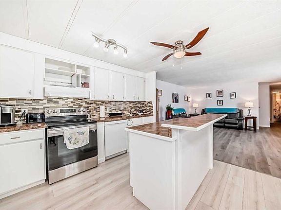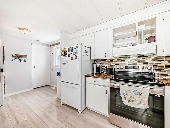 Nicely updated 2 bed/2 bath home in one of the best managed adult (16+) mobile home communities in Calgary. The main entrance into home is through a heated addition that is large enough to be a craft room or den. As you enter the home, you will enjoy how open and bright the main living area is. The kitchen is well thought out to maximize cooking and prep in a compact area. Both bedrooms are large enough for king size furniture and, being at opposite ends of the home, provide plenty of privacy. A large deck off the dining room makes summer BBQs convenient. Updates include furnace (2024), stacking washer/dryer (2024), new blinds, flooring and freshly painted. Parkridge Estates is an adult (16+) community with a clubhouse and very active social committee. Activities include jam sessions, coffee meetings, pub nights, crafter circle and dinner dances. Lot fee is $820/month which includes landscaping, snow removal, waste and recycling. There is also a mandatory $25/year association fee. Pet restrictions are 2 pets per home; dogs must be less than 15 inches at the shoulder when fully grown. The community backs onto the Monterey Park regional pathway and has easy access to Stoney Trail and 16th Avenue making it easy to get almost anywhere in the city.