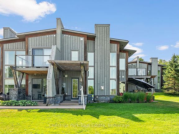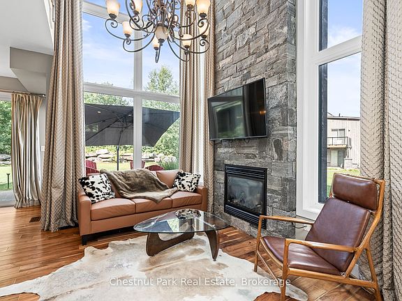 This Fully Furnished Two Bedroom Luxury Loft blends sleek modern design with warm natural elements. Full height windows allow an abundance of natural light into the space and the floor to ceiling stone fireplace is the focal point of the Living Room. This beautiful Loft was originally a grand prize in the Princess Margaret Home Lottery and is bursting with upgrades including hardwood flooring ,a grand chandelier, upgraded cabinetry and a waterfall quartz island. Entertain friends and family in the open concept main floor complete with Dining Area and easy access to your own private ground floor patio/BBQ area, backing onto the 13th fairway. Main floor laundry and a 2 piece powder room complete the Lower Level. The Upper Level boasts warm wood ceilings and a modern glass rail system offering open to below views of the main level. The spacious Primary Bedroom has a private upper deck and forest/fairway views. The second Bedroom is perfect for your guests and has an upgraded full glass panel to reduce noise and provide more privacy. A 3 piece washroom completes the Upper Level. Purchase comes with Golf or Social Entrance Fee included. This unit is located beside a green space area adding an abundance of privacy compared to other units on site. The Doug Carrick designed course is one of the top Golf Courses in Canada and Club amenities include infinity pool, kids pool, fitness studio, fire pit area, ski/snowshoe trails and an outdoor skating rink. Enjoy fine dining in the Muskoka Room, pub style food in Cliffside Grill or relax and enjoy stunning views at the unique patio situated on a 100 foot outcropping overlooking the course. Take advantage of the fully managed Rental Program to help generate revenue when not using your unit. Located a short distance from Muskoka Wharf. Fully furnished and ready for your arrival. Come live the life you imagined.