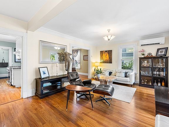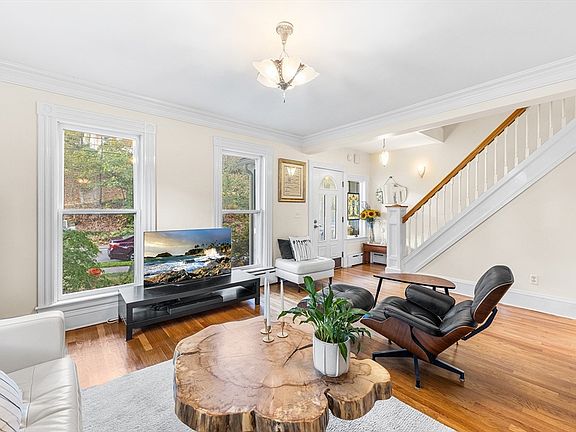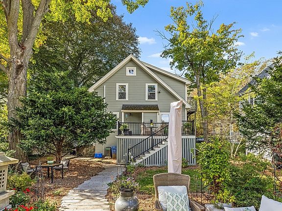 This 3-bedroom home offers modern comfort and design with classic New England charm! The bright living room showcases triple crown molding and custom lighting. The gourmet kitchen has a custom island mahogany-stained maple top w/ seating, LG professional signature appliances, Marvel wine fridge, designer tile backsplash & custom baking station w/ mixer lift cabinet. The dining room includes linen storage & custom lightings. 1st floor bath offers a soaking tub, wood paneling & gold finishes. 2nd floor full bath includes a rain shower, handheld shower, built-in shelf & custom designer tile silhouette. Primary bedroom has a double closet plus a single closet. 2nd bedroom has custom vertical curtain panels & a built-in desk designed for the space. Systems include a new Lochinvar furnace, 200 AMP electrical service, and an oversized hot water tank. The charm continues outside with a paved garden patio with fountain & shed w/ cupola. A half mile to commuter rail & downtown Wakefield.