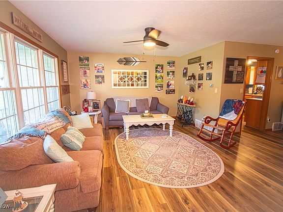 Beautiful ranch 3 bedroom 2 bathroom home located on a corner lot. Many features including large family room with gas fireplace, first floor laundry, large primary bedroom with attached bathroom. Partially finished basement with plenty of room for additional storage. the exterior boasts of relaxation with both a front porch for sitting with your morning coffee or the back patio with firepit for your evening wind downs. The playset and she are also included.